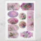 Eine Tafel mit kleinen Etiketten und Tags mit hübschen, schüchternen, rosa Blumenmotiven. Schneiden Sie einfach diese kleinen Etiketten und Geschenketiketten aus, um als Verzierungen zu Ihren Scrapbüchern, Junk Journals und Collage Projekte hinzuzufügen, oder als Geschenketiketten zu verwenden. Die Rückseite des Blattes ist blassrosa. Vintagere Designs und Scrapbook-Verzierungen sind in unserem Zazzle-Shop erhältlich, ebenso wie viele andere Stile von Scrapbook und Zeitschriften.