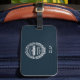 Das Vintage Siegel für die Stadt Boston MA auf dunkelblauem Hintergrund ist auf einem stilvollen Gepäckanhänger in Weiß gehalten. Es wurde das offizielle Siegel im Jahr 1914 und ist ein Rundbild, das zeigt: einen Blick auf die Stadt Boston, das Motto "SICUT PATRIBUS, SIT DEUS NOBIS" (was bedeutet: "Gott sei mit uns, wie er war mit unseren Vätern"), und die Inschrift "BOSTONIA CONDITA AD. 1630 CIVITATIS REGIMINE DONATA AD. 1822." Personalisieren mit Monogramm oder Namen