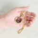 Delikate, raffinierte Blumenmalerei, ein wunderschönes Bouquet mit Torfbäumen. Design auf goldener Halskette mit halb transparenten römischen Uhrennummern. Ideal zum Geburtstag oder Muttertag von Großmutter.