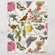 Dieses Vintage 8.5x11" Scrapbooking-Design besticht durch elegante botanische Schmetterlinge und Vögel mit Blume und Früchten in Rosa, Gelb, Blau, Grün und Braun auf einem Elfenbeinhintergrund, mit antiken Papiertexturen. Ideal für Papierhandwerk und Scrapbooking. Entworfen von © Tim Coffey.