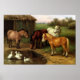 Ein schönes Vintages Gemälde von Ponys und Enten auf dem Bauernhof. Datum zwischen 1800 und 1900.