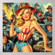Vintages Button für Feuerwehrleute Poster