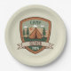 Diese personalisierten Teller sind mit einem Abzeichen im Scout-Stil mit einem gemütlichen Zelt unter hohen Kiefern ausgestattet. Das schildförmige Abzeichen zeigt ein individuelles Namensbanner. Mit erdigen Retrotönen ist dieses abenteuerfertige Design perfekt für Kinderausflüge, Geburtstage oder Sommerlager-Camping.