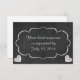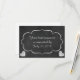 Diese Retro-Mode-Hochzeitskarte verfügt über ein Scroll-Schild-Design mit eigenem Text. An den unteren Ecken befinden sich zwei Kreidekonstruktionen. Die Bilder und der Text werden auf einem dunkelgrauen Chalkboard-Hintergrund platziert. Die Rückseite der Antwortkarte ist weiß, damit der Befragte leicht markiert werden kann. Der gesamte Text ist anpassbar. Diese Karte passt zu den "Vintagen Einladungen für Hochzeitsfeiern" in unserem Geschäft.