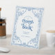 Ein skurriles Podest-Schild mit Vintagem Chinoiserie-Design mit verziertem antiken Rahmen, das die Gäste einlädt, ihre herzlichsten Wünsche in Ihrem Hochzeitsgast-Buch mit Charme und Anmut verlassen.