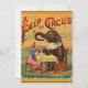 Ein Piep im Zirkus, ein Vintages Zirkusposter mit einem Elefanten und einem Clown mit einem Tee-Party