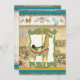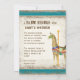 Diese Baby Shower Einladung beinhaltet ein Vintages Zirkusposter-Bild im Hintergrund sowie originale Aquarellbilder von Audrey Jeanne Roberts, um ein antikes Ambiente zu schaffen, aber es ist eine brandneue Kunst! Perfekt für den neuen Baby Jungen, bezaubernd und dennoch mit dem Gefühl der wilden Dschungeltiere in leuchtend modernen Farben, die Ihren neuen kleinen auf der Welt willkommen heißen! Das zentrale Bild ist ein handgemaltes Giraffe Karussell Pferdetier mit elegantem Detail im Sattel, und goldener Pol. Es ist Set in sehr detailgetreuem, wirbelndem Blatt-Rahmen von antikem Kalkgrün, überlagert auf einem gealterten, gegrungenen, abgenutzten, geschliffenen Vintagen Zirkusposter-Bild mit grauen und tiefgeernteten Goldfarben. Die obere Grenze besteht aus original von Audrey Jeanne bemalten Karusselltieren - ein weißes Pferd, ein blaues Seepferd, die Giraffe und ein Hase auf beiden Seiten. Die Hintergrundpapiere zu diesem Design sind getragen, gealtert, gestempelt, mit Tinte versehen und mit verschiedenen Cremes-, Bräunungs-, Braun- und tiefblaufarbenen Farbtönen bemalt.
