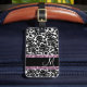 Eine elegante Art zu reisen - mit schwarz-weißen Damasken. Fügen Sie Ihren Namen oder Monogramm auf der Vorderseite hinzu.