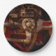 Nahaufnahme von roten Rädern und Lenkstangen eines alten Vintagen Dampfzuges, lokomitiv, Motor. Texturierte Grunge-Fotografie. Bahn, Bahnkunst. Nahe Blick auf Vintage Maschinen und Transportmittel.