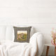 Kissen mit Vintagem Foto-Lithographie der Burg Dunnottar in Schottland von 1895 fotografiert die Ruinen einer mittelalterlichen Burg auf einer Klippe mit Blick auf das Meer, mit sanften grünen Hügeln im Vordergrund. Digital gereinigt, verbessert und künstlerisch gerendert, um Stift und Tinte mit Aquarellen zu ähneln. Gerahmt und unterlegt mit dem Clan Sutherland uralten, verwitterten Tartan, ein traditionelles schottisches kariertes Muster in goldfarbenen Bräunen, hellgrün und rot, mit Schwarz-Weiß-Highlights.