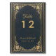 Diese blaue, elegante Hochzeitsfeier-Tischnummer mit Vintagem Ambiente hat einen Vintagen goldenen Rahmen mit barocken Golddekorationen auf marineblauem Hintergrund. Die Namen und der Titel Tabelle sind in einem eleganten kalligrafischen Skript geschrieben. Alle Texte können personalisiert sein und eine goldene Farbe haben, die den goldenen Verzierungen des Rahmens ähnelt. Der Hintergrund mit seinen eleganten Golddekorationen auf dunkelblau stammt aus einer Vintagen französischen Buchcover-Bindung von Georges Mercier (1885-1939) - Madame de Maupin von Teophile Gautier, Band 1, Ausgabe 1911, Paris - jetzt im öffentlichen Bereich, The New York Public Library