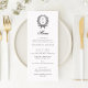 Vintage Olive Leaf Botanische Kreidekarte Schwarz und Weiß Hochzeitsmenü. Vorlage für traditionelle Hochzeitmenüs