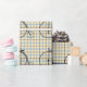 Vintages Fahrrad- und Tartanmuster (Gelb-, Blau- und Brauntöne).