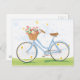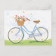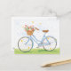 Handgezeichnete Abbildung eines blauen Vintagen Fahrrads mit einem Korb voller Blume.