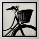 Ein Bild eines Vintagen Fahrrads vor einem grungenhaften Stoffhintergrund. Das Bild ist nah nach oben, fokussiert auf die obere Vorderseite des Fahrrads.