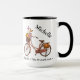 Dies ist eine wunderschöne Tasse mit einer Illustration eines Vintagen Fahrrads mit einem Korb von Blume und den Worten "Genießen Sie das Leben. Nehmen Sie den landschaftlichen Weg". Die Tasse kann angepasst werden, indem der Name in den Namen des Empfängers geändert wird. Dies wird ein wunderbares Weihnachten, Geburtstag oder Abschiedsgeschenk machen.