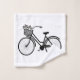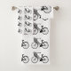 Ein klassisches und individuell anpassbares Schwarz-Weiß-Badetuch-Set mit digitaler Musterdarstellung alter Fahrräder mit Blume-Körben. Besuchen Sie unseren Shop für stilvollere Handtücher.