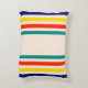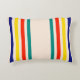 Dieses Vintage, fett gestreifte Accent Kissen mit Spiegelbildern in lebhaften Farbtönen aquamarin, rot, gelb und königsblau auf einem cremefarbenen Hintergrund. Dieses farbenfrohe Design ist perfekt für Entdecker und Modedesigner. Das klassische Muster wird nie außer Mode kommen!