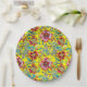 Ein reich detailliertes, nahtloses Blumenmuster, inspiriert durch Vintage Stickereikunst, mit fett roten, orangefarbenen und blauen Blüten in einem aquamarinen Rahmen, perfekt für Stoff oder Druck.