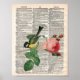 Ein Vintager Wörterbuchausdruck mit einer wunderschönen französischen botanischen Abbildung einer Rose und eines Vogels wird eine wunderbare Ergänzung zu jeder Wohngestaltung darstellen. © Julie McIver