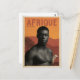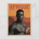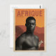 Wunderschön illustriertes antikes Reiseplakat im Kolonialstil mit einem afrikanischen Stammesmann und einem Zebra gegen einen afrikanischen Sonnenuntergang. Natürliche Farben, einschließlich Orange und Retrobraun
