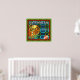 Vintages Fruchtkäfigetikett. Dieses Vintage Obstkastenlabel wurde von den Künstlern der Vintagen Fabrik wunderschön ergänzt und zu seiner ehemaligen Brillanz wiederhergestellt. Wir haben auch einen ergänzenden Rahmen um das Bild herum hinzugefügt, der es zu einem wahrhaft sehenswerten Kunstwerk macht.