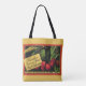 Schöne Tote-Taschen im Überdruck! Erhältlich in zwei Stilen und zwei Größen! Vintage Illustration Obstkiste Kunstwerbung mit einem Haufen Bio Kirschen auf einem Baumzweig, frische Früchte aus den Obstgärten auf dem Bauernhof. Holen Sie sich einen Haufen vom lokalen Bauernmarkt oder am Straßenstand. Thurber Kirschen Werbung mit Text Thurbers Pected Pitted Red Cherries.