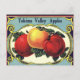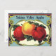 Vintage Illustration Obstkiste Kunstwerbung mit drei reifen Bio goldenen und roten Äpfeln, die frisch aus dem Obstgarten des Bauernhofs sind. Retro Werbung für Yakima Valley Äpfel von der Wapato Fruit and Cold Storage Company.