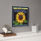 Vintage Illustration Fruchtkiste Kunst für Orangedale Sunflower Marke Valencia Orangen. Das Fruchtkartett Retro ist mit einer großen, gelbblühenden Blume aus Sonnenblumen im Garten versehen.
