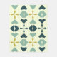 Vintag Geometrisches Muster in Petroleumblau, Kalkgrün und Gelb.