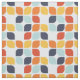 Dieses moderne Muster aus der Mitte des Jahrhunderts weist orange, aquamarine und aquamarine geometrische Formen auf.