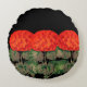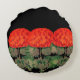 Dieses runde Kissen weist ein gewagtes Blumendesign auf. Drei rot-orangefarbene Geranien sind anmutig vor schwarzem Hintergrund stehend. Mediterran , Sommer fühlen Sie sich auf Ihrer Zuhause. Sie können es nun mit einem Namen /monogram/text etc .________________ Das ursprüngliche antike Bild wurde von Alma Wad bearbeitet und auf verschiedene Objekte angewendet.