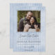 Mit diesem Vintagen gestreiften Foto Save the Date kündigen Sie Ihr Hochzeitstag an Freunde und Familie. Das Ankündigungsdesign zeichnet sich durch eine Foto-Platzierung des glücklichen Ehepaares, ein sauberes Textdesign und ein passendes Streifenmuster auf der Vorder- und Rückseite aus.