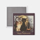Vintages Halloween Black Cat & Owl Hexenhut Moon Magnet