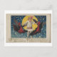 Diese Postkarte ist eine Reproduktion einer Vintagen Halloween-Postkarte mit Gedicht, Teufel und Fledermäusen.