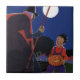 Vintages Halloween, gruselige Hexe mit Junge Fliese
