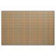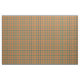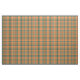 Gewebe mit einem Plaidwerx ursprünglichen Halloween karierten Muster in den Schatten der Orange, des Flaschengrüns, des Schwarzen und der Creme, mit Äradekorationen der Farbe ab 1950 s.