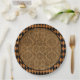 Dieses Vintage Halloween Paper Plate zeichnet sich durch ein viktorianisches braunes Damast-Design in der Mitte aus, mit schwarz-braunem Harlequin-Muster am Rand.