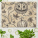 Dieses Vintage Halloween-Küchentuch ist mit fein illustrierten Kürbissen ausgestattet, von denen einige in grinsende Jack-o'-Laternen eingemeißelt sind und mit wölkenden Weinreben und Blätter verziert sind. Das Design in einer detaillierten Skizzenlinie und einer sepiatfarbenen Palette erinnert an den Charme antiker Gravuren. Ideal, um ein nostalgisches, seltsames und dennoch elegantes Halloween-Ambiente zu schaffen. Ideal für saisonale Zuhause-Dekoration, Party-Vorräte oder einmalige Halloween-Geschenke mit einer Touch alter Kunst.