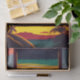 Dieses Kunstwerk ist im Vintagen Siebdruck-Stil des WPA entworfen, der in den 1930er und 1940er Jahren in den Vereinigten Staaten sehr beliebt war. Die Staat-of-the-art-Technologie ermöglicht die Darstellung in lebhaften Farbtönen, dominiert in Orange-, Rot-, Blau- und Grüntönen. Dieses Kunstwerk ist ein wunderschönes Beispiel für Vintages Siebdruck-Design, das nostalgische Elemente mit modernen Techniken kombiniert, um ein atemberaubendes Kunstwerk zu schaffen. Der Einsatz von hellen Farben und die goldene Stundenbeleuchtung verleihen dem Bild Wärme und Tiefe und machen es zu einem einladenden und auffälligen Werk.