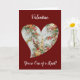 Originelles digitales Kunstwerk bestehend aus einer Armbanduhr aus Vintagen Blumentapeten oder Textilien aus der Deko-Zeit. Die Muster stammen aus dem öffentlichen Bereich und sind von mir in eine zeitgenössische Herz-Silhouette gestaltet. Ich wandte einen tiefen roten Hintergrund an, um mich mit den Blumenmustern in den Textilien zu harmonisieren. Die Vorderseite der Karte Staaten "Valentine, You're One of a Kind!", indem sie mit den ungewöhnlichen Farben und Formen der Silhouette behalte. Die inneren Staaten "Meine Liebe, mein Herz ist immer dein Herz!" Sie können Text so hinzufügen, wie Sie möchten oder wie verlassen!