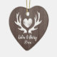 Unser 1. Weihnachten zusammen Vintages braunes Holzkorn und Hirschgeweih Keramik Ornament. Eigene Baumdekorationen mit rustikalem Herz und handgeschriebenen Schriftzeichen mit Pinsel. Holzpaneelhintergrund mit eleganter weißer Kalligraphie-Handschrift-Vorlage. Hübsche erste Weihnachts-Party Geschenkidee für verlobtes Ehepaar, frische Weds, Braut und Bräutigam, Freund und Freundin, Ehemann und Ehefrau. Die trendige Dekoration ist personalisiert mit dem Namen oder dem Gruß von Holiday. Mach dir dein eigenes für ihn und sie. Gold Glitzer String inklusive. Stilvoll handgeschriebener Schriftart. Fügen Sie optional Ihr eigenes romantisches Foto auf der Rückseite ein.