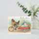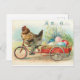 Dieses bezaubernde Vintage Design ist ein Huhn auf einem Fahrrad, das einen Wagen mit Ostereiern zieht. Der Hintergrund enthält den Text "A Glad Oaster". Die Postkarte ist neu, aber das Design in Vintag inspiriert.