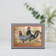 Vintage Abbildung eines Hahn- und Hühnchens im Barnyard, der nach Essen pickt.