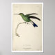 Vintage-Bild eines grünen, weißen und blauen Kolibri auf einem Zweig.