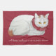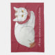 Ein Teetuch für Katzenliebhaber und Fans der Vintagen japanischen Katze Art. Die Illustration durch ukiyo-e Künstler Takahashi Shotei ist von einer serene orange und weißen Katze mit den gelben Augen, die einen roten gemusterten Schal tragen. Der Slogan liest "ein Zuhause ohne eine Katze ist gerade ein Haus" in flüssiger weißer Beschriftung. Sie können den rote Farbhintergrund mit dem besonders anfertigen Knopf ändern.