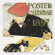 Vintage Abbildung Viktorianisch Jugendstil-Werbegestaltung, Poster-Kalender von Edward Penfield, 1897. In dieser Werbung zeigt ein Künstler, der eine Beret trägt und eine Pfeife raucht, während er auf einer Leinwand malt. Sein Haustier Calico Katze schaut sich an.