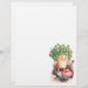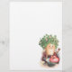 Antiquitätenbild aus dem 19. Jahrhundert, mit einem lächelnden Gesicht, rosa Wangen, humanisierter Topf-Pflanze aus vierblättriges Kleeblatt Kleeblättern, umgeben von einem roten Puffherz und einer Schlüssel, und einem hübschen goldgelben Schmetterling. Viel viel Glück!