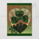 Illustration aus einer Vintagen Karte mit einem Kleeblatt in einem Herzen mit dem Motiv eines Schlosses!