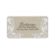 Das Aussehen der Burlap und weiße Blumenspitzen Design Rücksendeadressen-Aufkleber, um unsere Hochzeitseinladungen zu ergänzen.